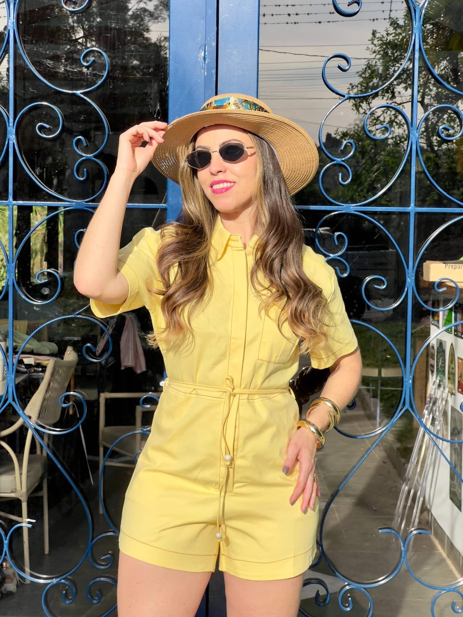 Por ser uma peça única, ele é altamente versátil: funciona muito bem com sandália, tênis ou até salto, bastando variar acessórios para mudar a proposta. O resultado é um look prático, moderno e cheio de estilo ideal para várias ocasiões.