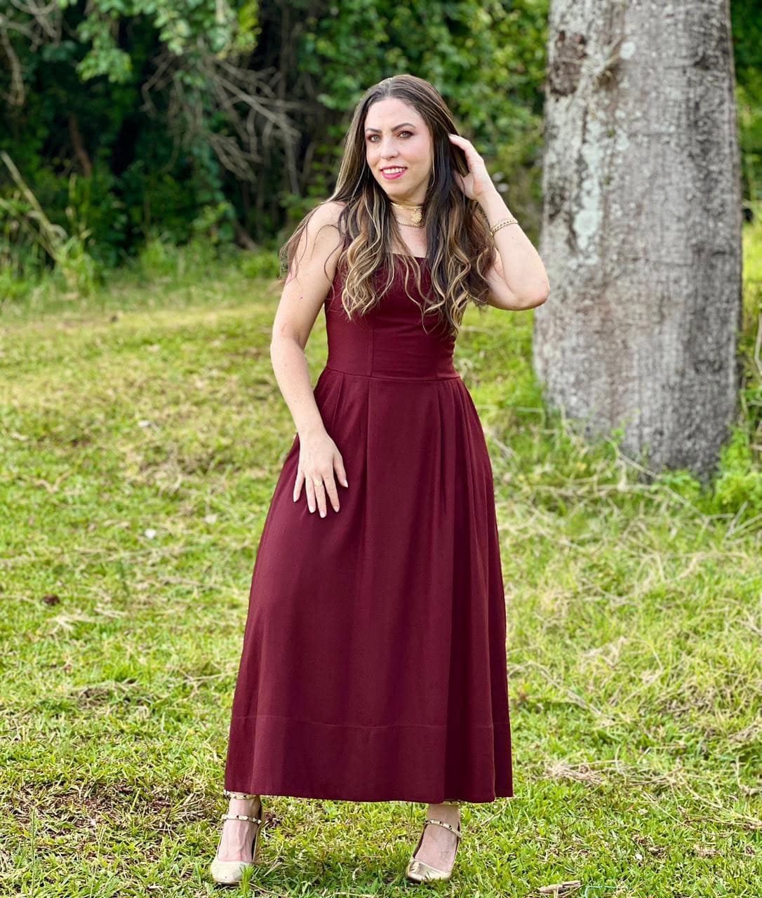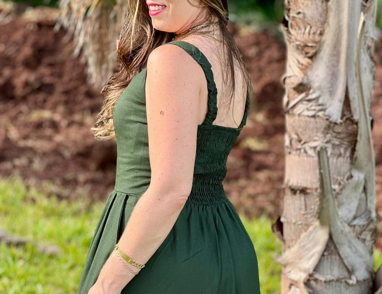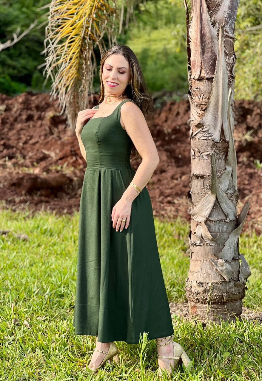 Vestido midi em tecido de linho, que garante elegância, conforto e um caimento impecável. Possui alças médias e decote reto, trazendo um visual moderno e atemporal. A saia possui modelagem com leve amplitude, criando movimento e valorizando a silhueta.Na parte das costas, o detalhe em látex na costa oferece melhor ajuste ao corpo, permitindo que a peça vista super bem sem apertar. Uma opção versátil para compor desde looks casuais até produções mais arrumadas.