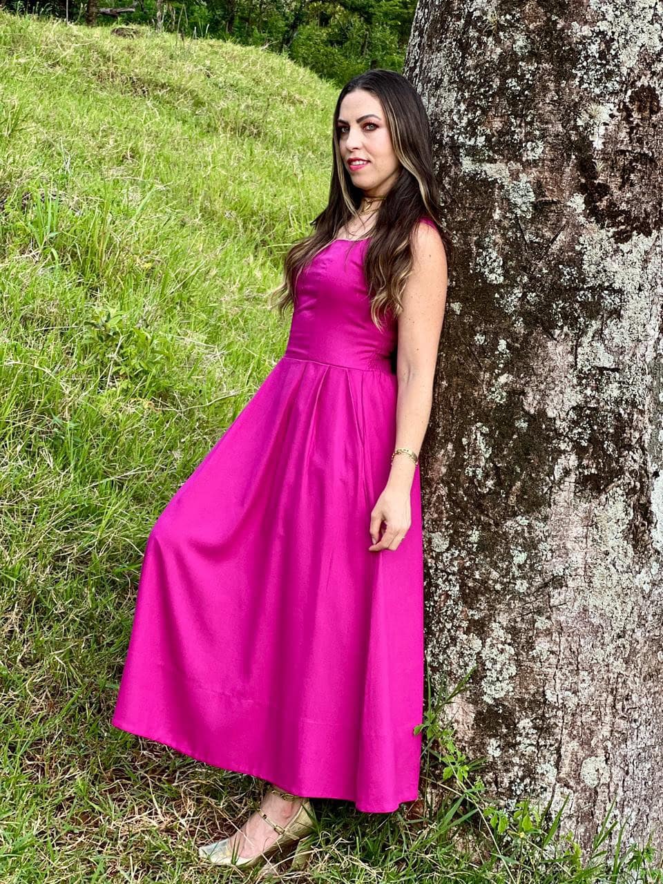 Vestido midi em tecido de linho, que garante elegância, conforto e um caimento impecável. Possui alças médias e decote reto, trazendo um visual moderno e atemporal. A saia possui modelagem com leve amplitude, criando movimento e valorizando a silhueta.Na parte das costas, o detalhe em látex na costa oferece melhor ajuste ao corpo, permitindo que a peça vista super bem sem apertar. Uma opção versátil para compor desde looks casuais até produções mais arrumadas.