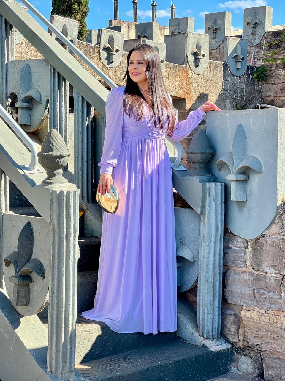 Além disso, o comprimento longo é ideal para eventos que pedem um look mais arrumado, mas sem perder a leveza e o conforto. Você pode combinar com um salto delicado e uma clutch dourada para um toque de sofisticação extra.